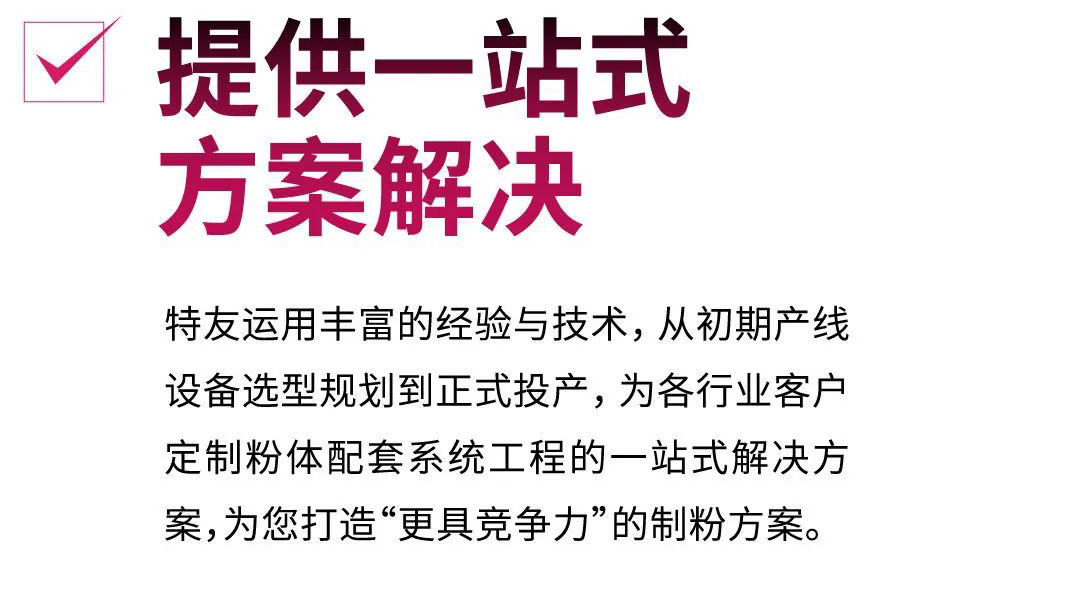 提供了粉體設(shè)備的銷(xiāo)售、粉體生產(chǎn)線的設(shè)計(jì)和建設(shè)服務(wù),從大規(guī)模的粉體設(shè)備工程系統(tǒng)到小規(guī)模的生產(chǎn)線,為客戶解決各類(lèi)難題。