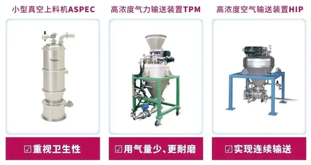 樹脂粉體是一種粘性強、熔點低的粉體,除了混合過程,需要特別注意對這種爆炸性粉體的隔離。這些都是需要密封和低速處理的粉體,各環節需要采用下圖的“高濃度低速空氣輸送系統”。