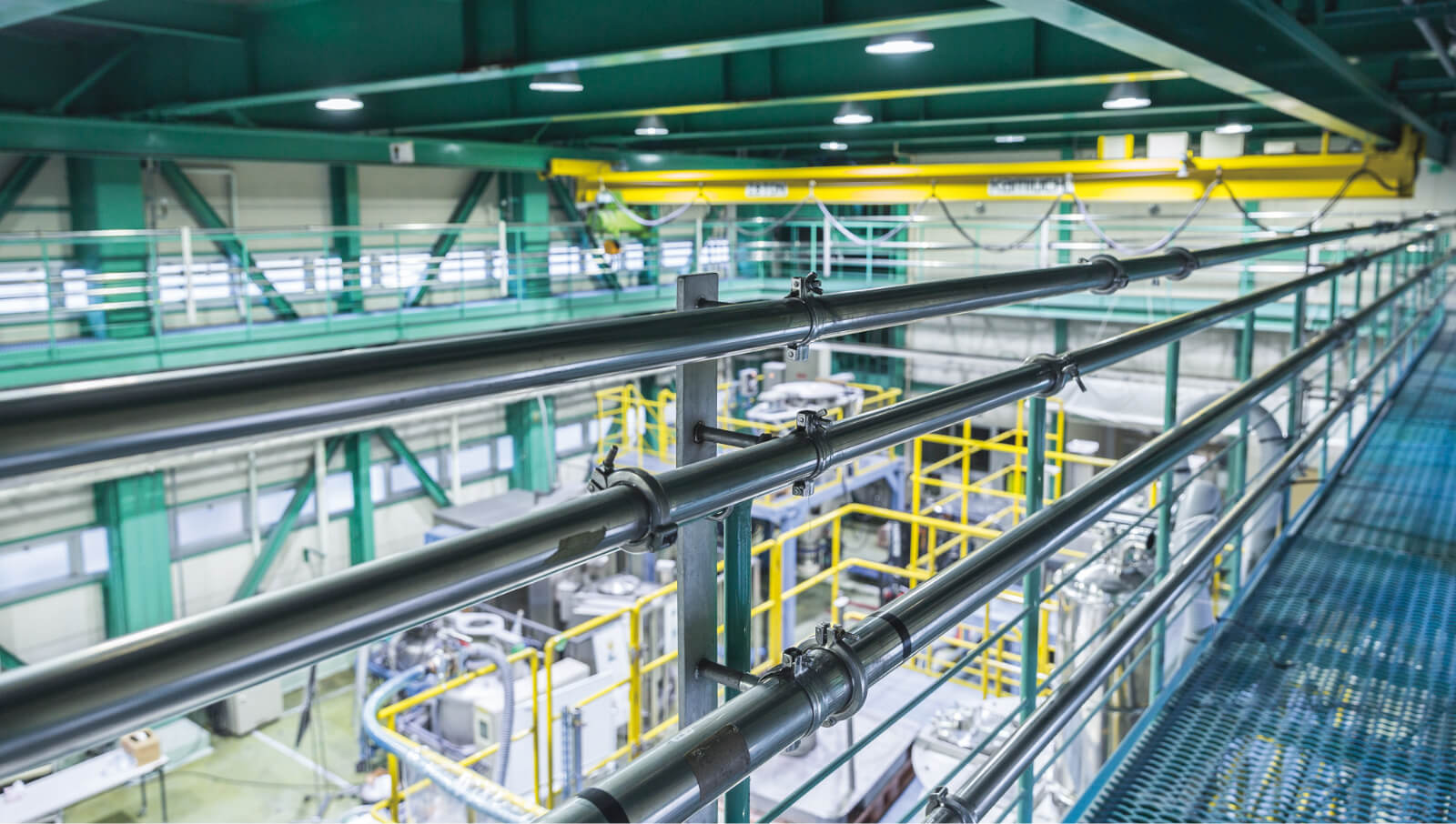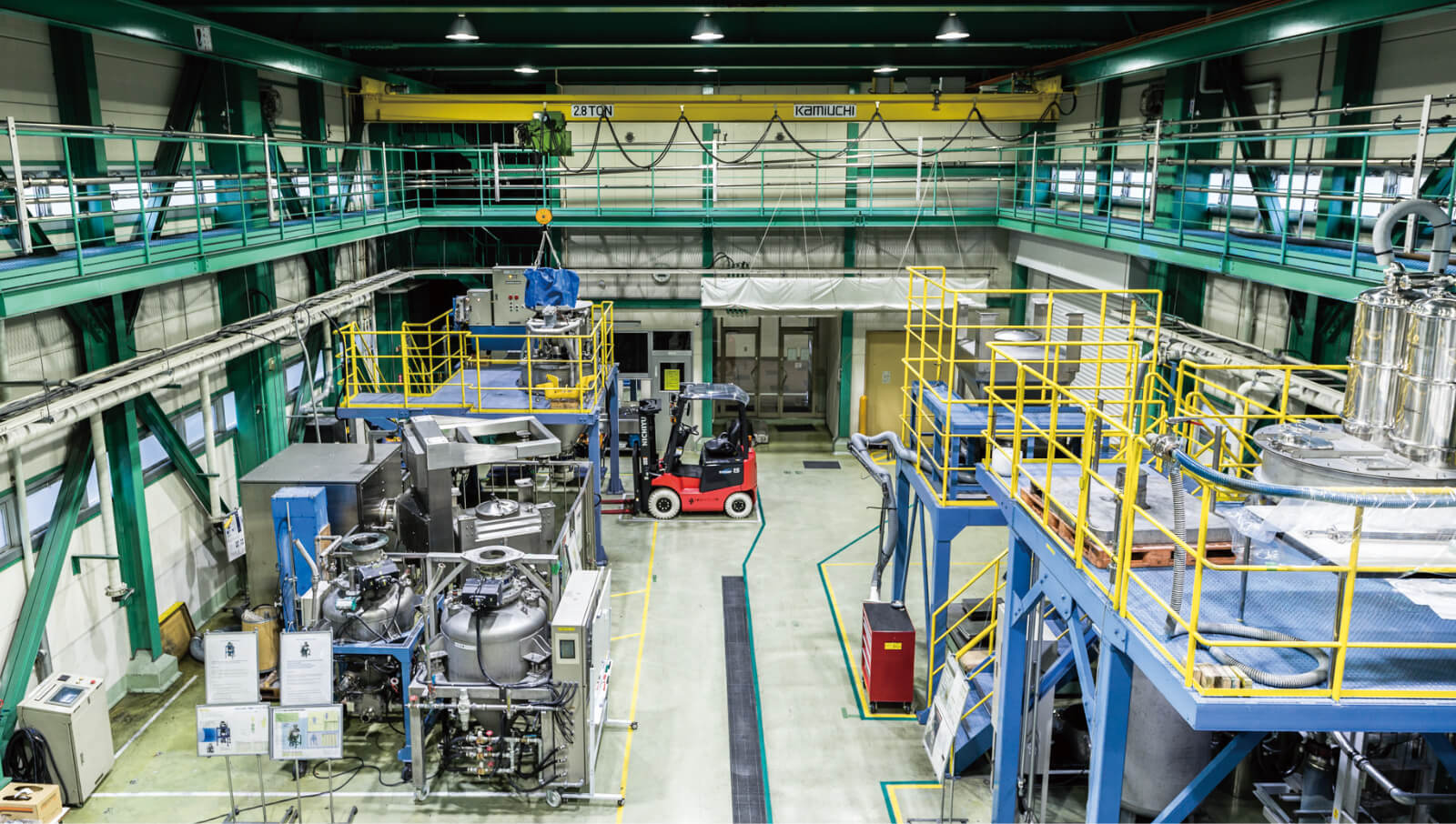 在第2棟,進行各種粉體輸送測試以及相關裝置的測試。配備了料倉、排出短管、破橋設備等裝置。
