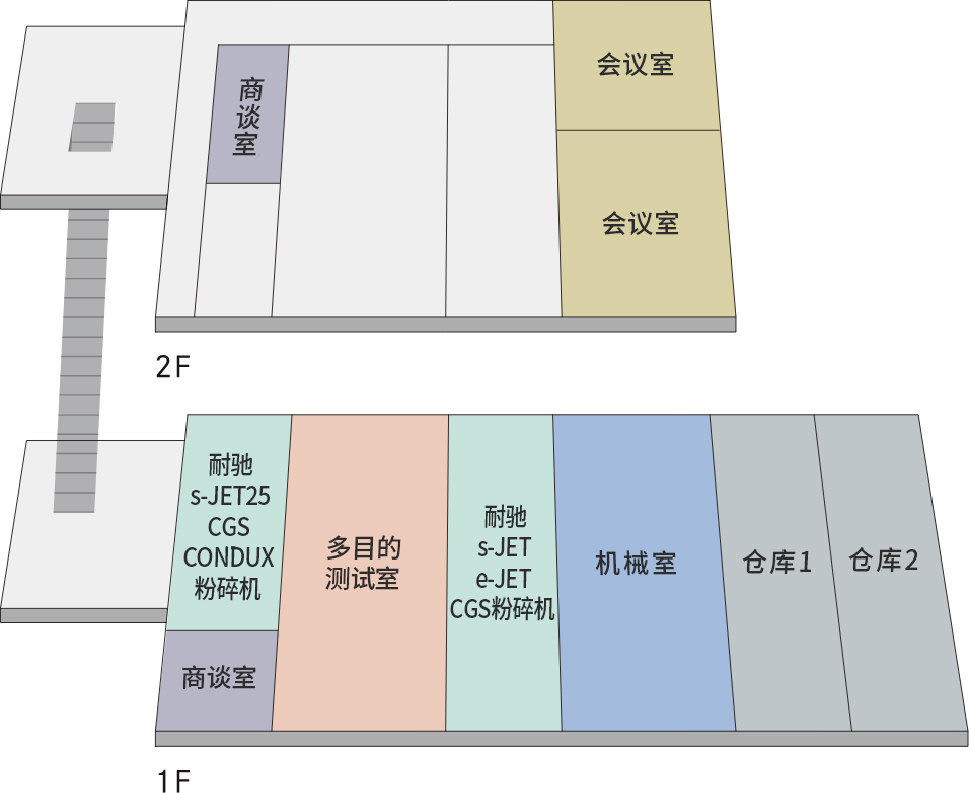 在第3棟,配備了混合?干燥測試設備、微粉碎?納米級別粉碎?分級測試設備、空調測試室。